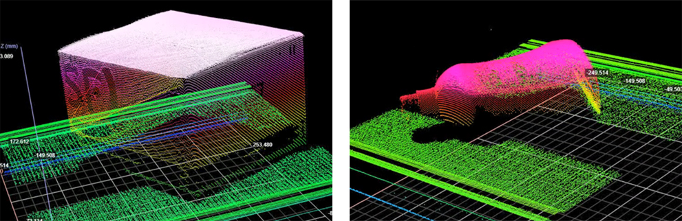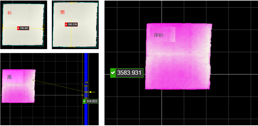 通過三維激光傳感器掃描獲得物流包裹的外觀形狀,外觀尺寸:長、寬、高和體積,以及包裹的實際位置信息。