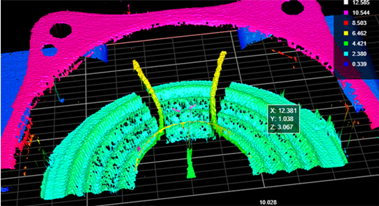 1、針對于高度的變化具有很高的識別度,傳統的2D視覺檢測方式無法達到要求。 2、穩定的掃描出我們所需要的位置信息提供給機械手。 3、重復性數據達到:17μm